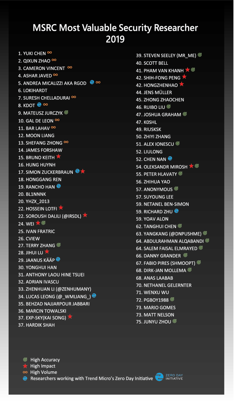 MSRC 2019 Most Valuable Security Researchers