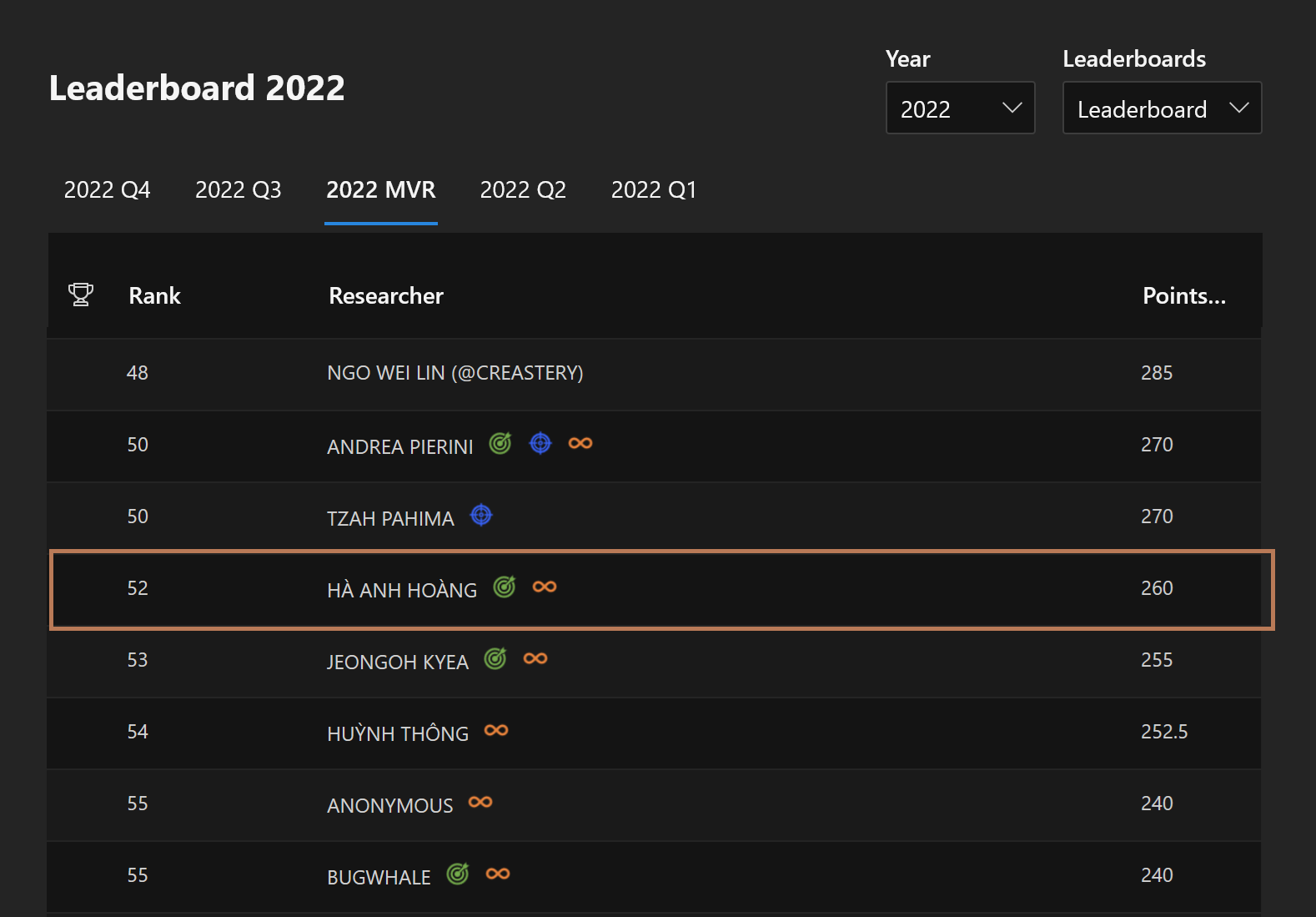 Today, we are proud to announce that our researchers, Ha Anh Hoang, Nguyen Xuan Hoang (aka nxhoang99) and Doan Phan Tung Duong (aka Q5Ca), have been shortlisted for this year's Microsoft Most Valuable Security Researchers (MVRs).