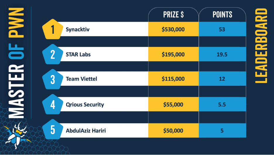 Top 3 Master of Pwn at Pwn2Own Vancouver 2023